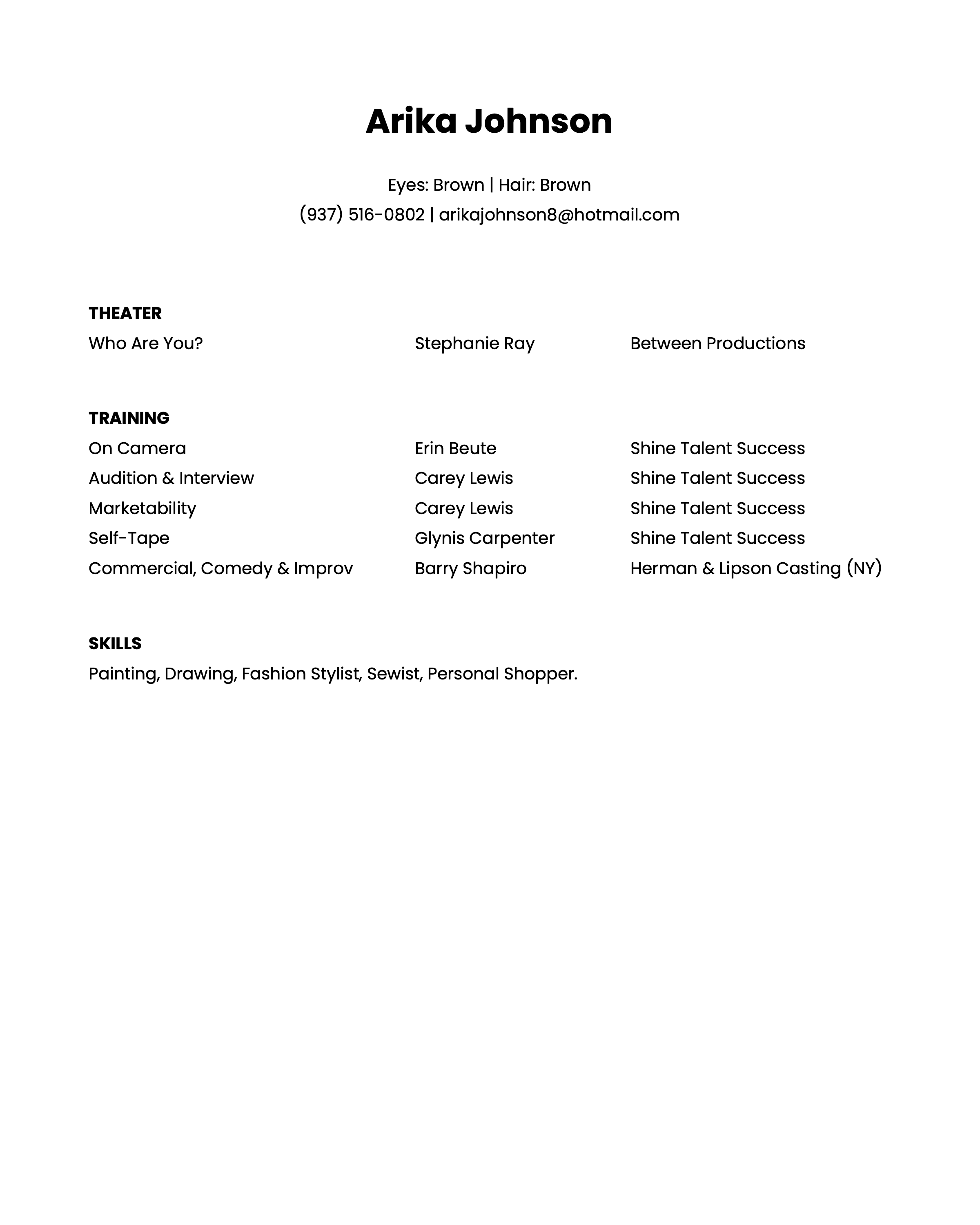 Arika Johnson - Modeling